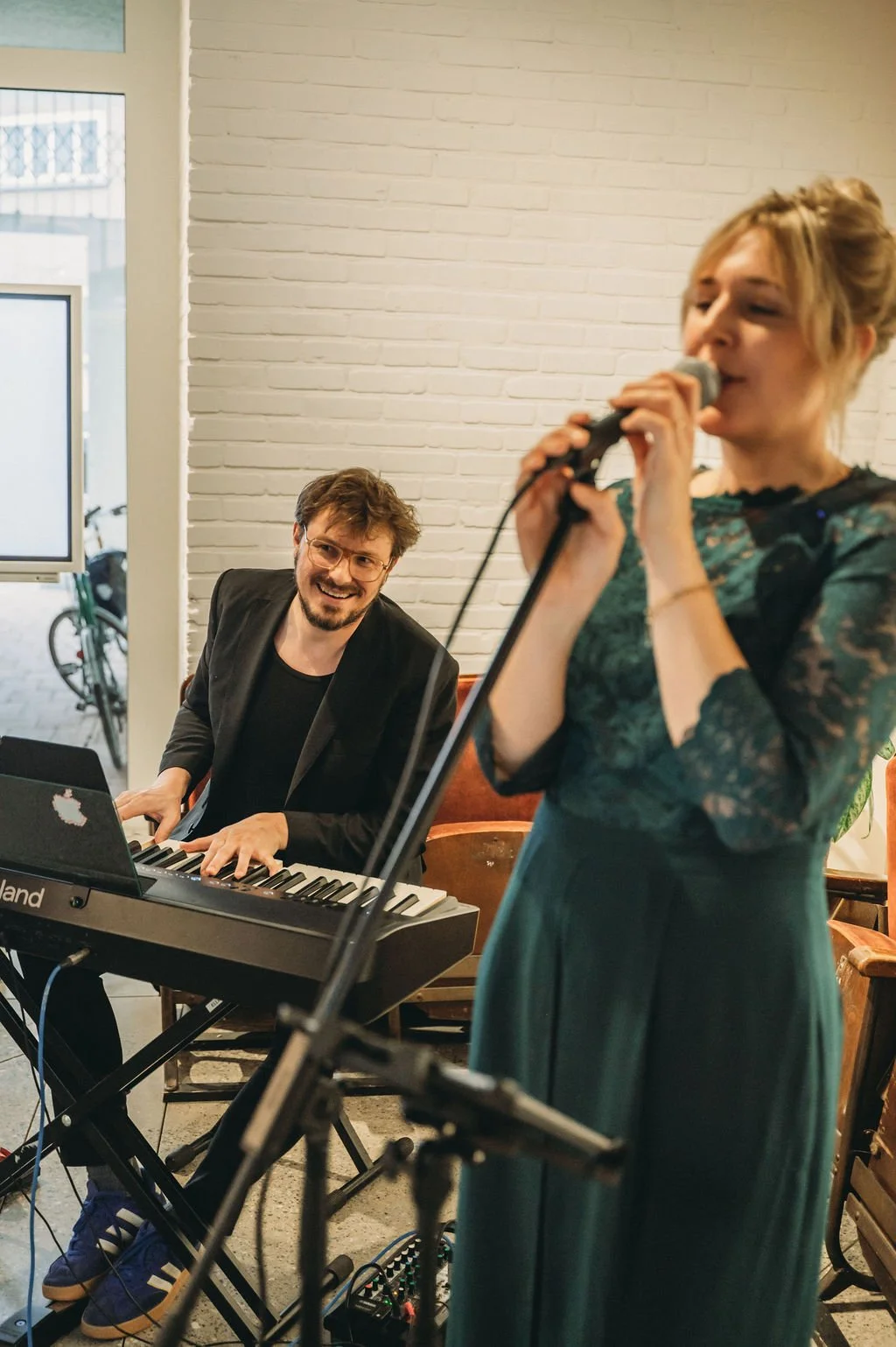 Afhankelijk van de sfeer die je wil creëren, de ruimte waarin het event plaatsvindt en de duurtijd bespreken we samen welke opties er zijn en welke bezetting: duo zang + gitaar/piano of uitbreiding naar een combo met bas en drums en eventueel sax of trompet het beste past bij de visie voor jouw event.